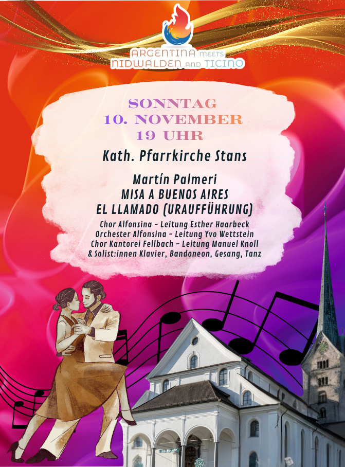 Am Vormittag findet ein Schulworkshop mit Schüler*innen unter der Leitung von Martín Palmeri, Esther Haarbeck und Yvo Wettstein statt. Am Abend erwartet Sie ein 60-minütiges Konzert mit Solist*innen, Tango-Paaren, Schülern, Chor & Orchester